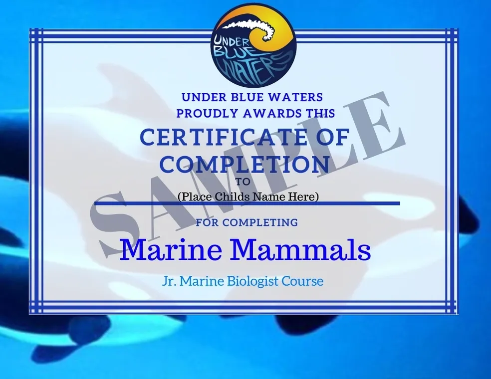 A personalized certificate celebrating your child's achievement as a Jr. Marine Biologist for each topic.